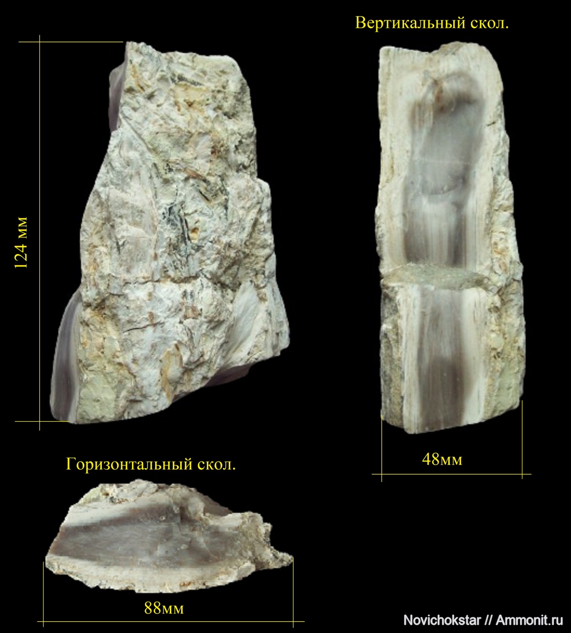Фрагмент окаменелой пальмы, с не характерной, сплющенной формой в поперечнике.
