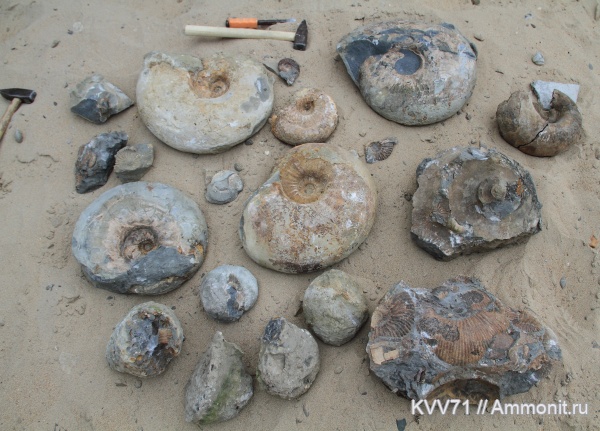 Находки в 4 руки с Омаром сегодняшнего дня. Крупные аммониты Parahoplites, так же присутствую наутилус, Lytoceras и часть его конкреции с набором аммонитов Acanthohoplites, Crioceratites, Epicheloniceras, Zuercherella и др.
