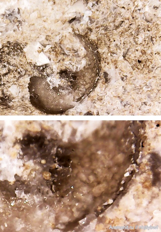 Это очень интересный образец! Внутренность раковины заполнена пеллетами - т.е. скомпонованными фекальными упаковками членистоногих. В ордовике "пеллетный транспорт" переработанной органики впервые становиться "нормой", что во много способствовало очищению придонных слоев от мути и привело к образованию биоты современного типа.