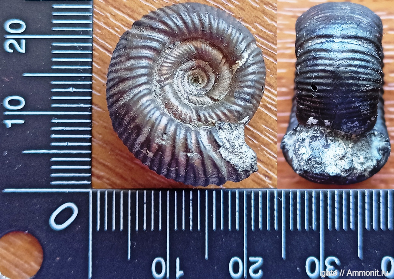Пережимы связаны с временными устьями, с точками временных остановок роста. То есть эти аммониты росли не постоянно, а периодами - строили сразу часть оборота, потом какое-то время не росли, потом снова строили следующий кусок раковины. | ||||||
