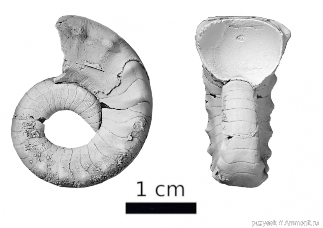 Первые 1,5 оборота Pseudotemnocheilus kosswae из нижней перми Башкортостана.
