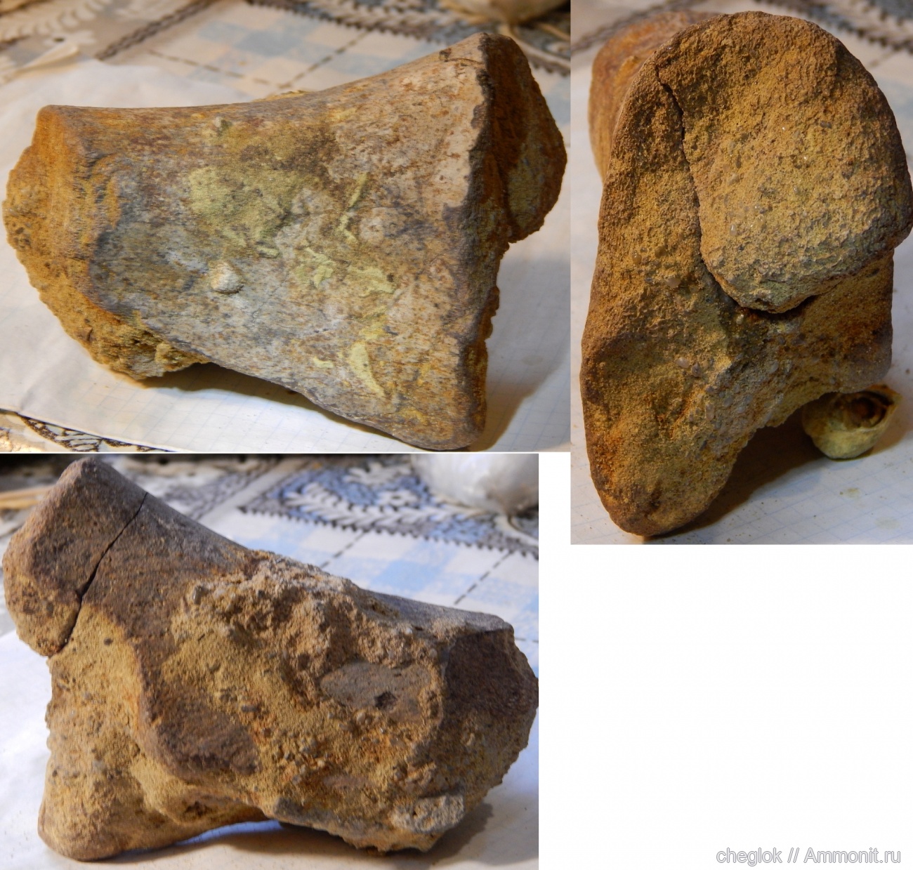 напоминает плечевую кость крупного ихтиозавра, но для уверенности надо в руках повертеть. Маленький позвонок лучше бы тоже в тот музей пристроить - он поинформативней:) | ||||||