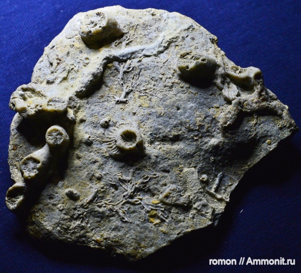 Вот этот кораллит в центре, он напоминает остаток колониального коралла Phillipsastraea поглощённого строматопорой, а на её поверхности расселились уже другие кораллы. | ||||||