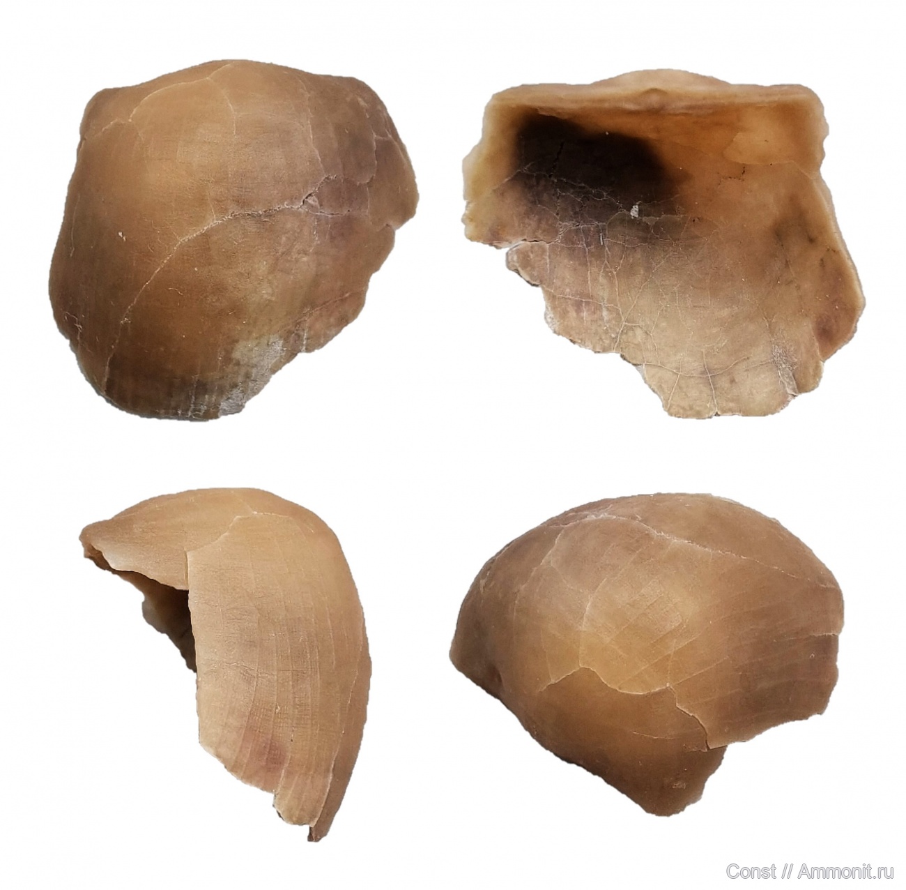 Выпукло-вогнутая брахиопода шириной 25 мм. Толщина (обе створки вместе) как у куриного яйца. Передний край всегда попадается ломанным. Помогите определить, пожалуйста. Bekkerina?