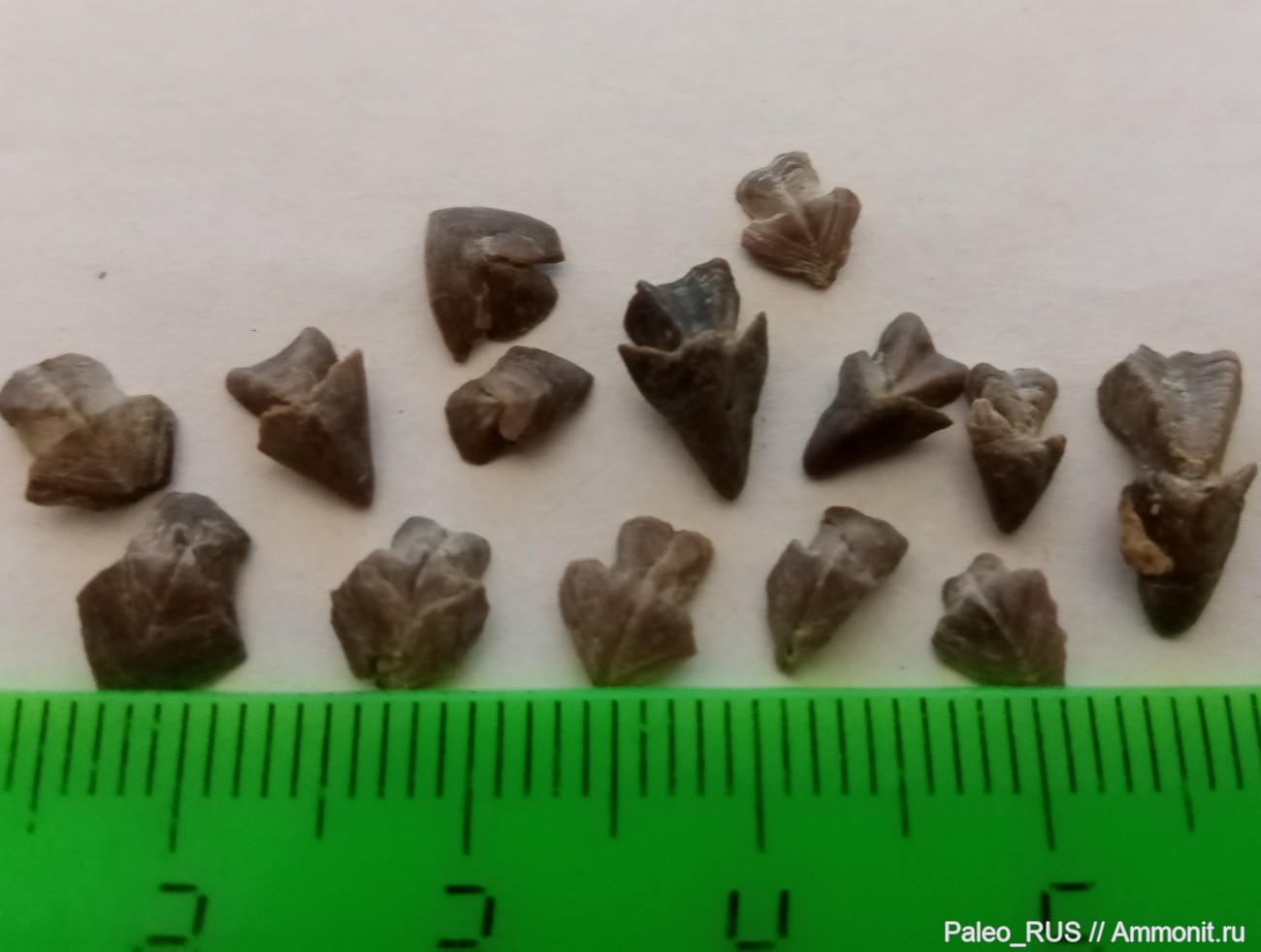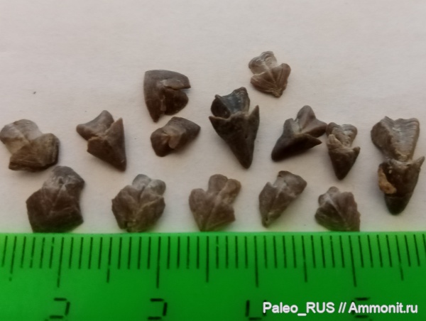 кучка ринхолитов из пос.Верхоречье, обнаружены в серых глинах наряду с белемнитами.