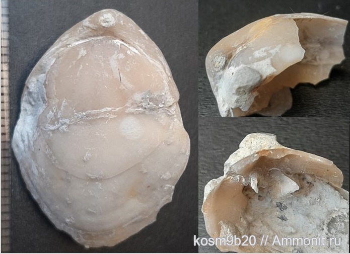 Первая находка подобной брахиоподы. Неполная сохранность. Найдена в породе (похожа на мел, известняк). Практически все образцы просто лом. выбрасывать жалко -все-таки новый образец в школьной палеонтологической коллекции. Были бы благодарны за помощь в определении или за совет по определителям !!!