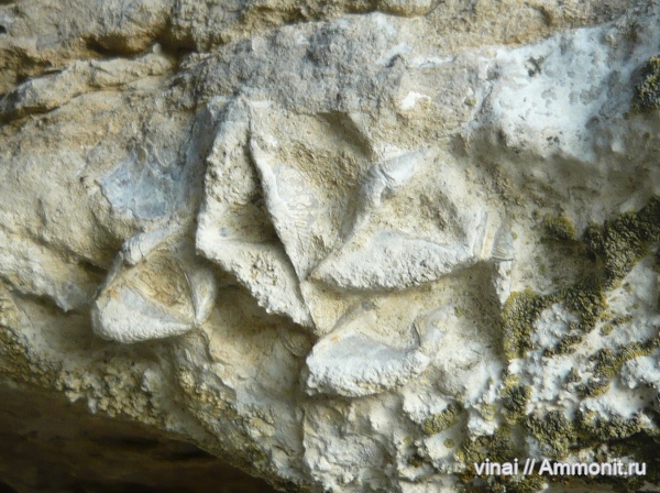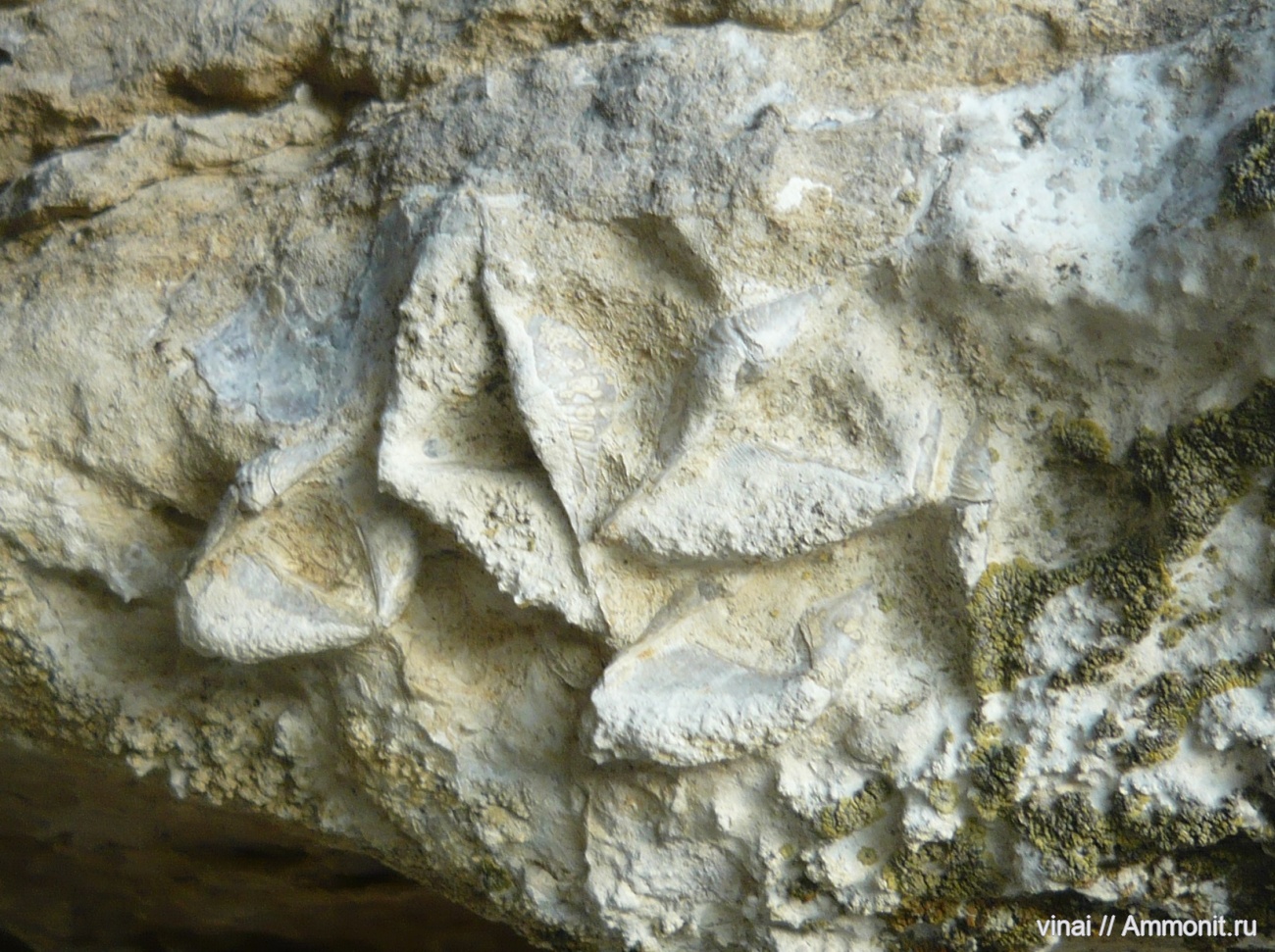 Природное расположение спириферид в известняке. Татарстан, Лениногорский р-н. Более точное расположение указывать не буду, чтобы там не нарисовались варвары с молотками.