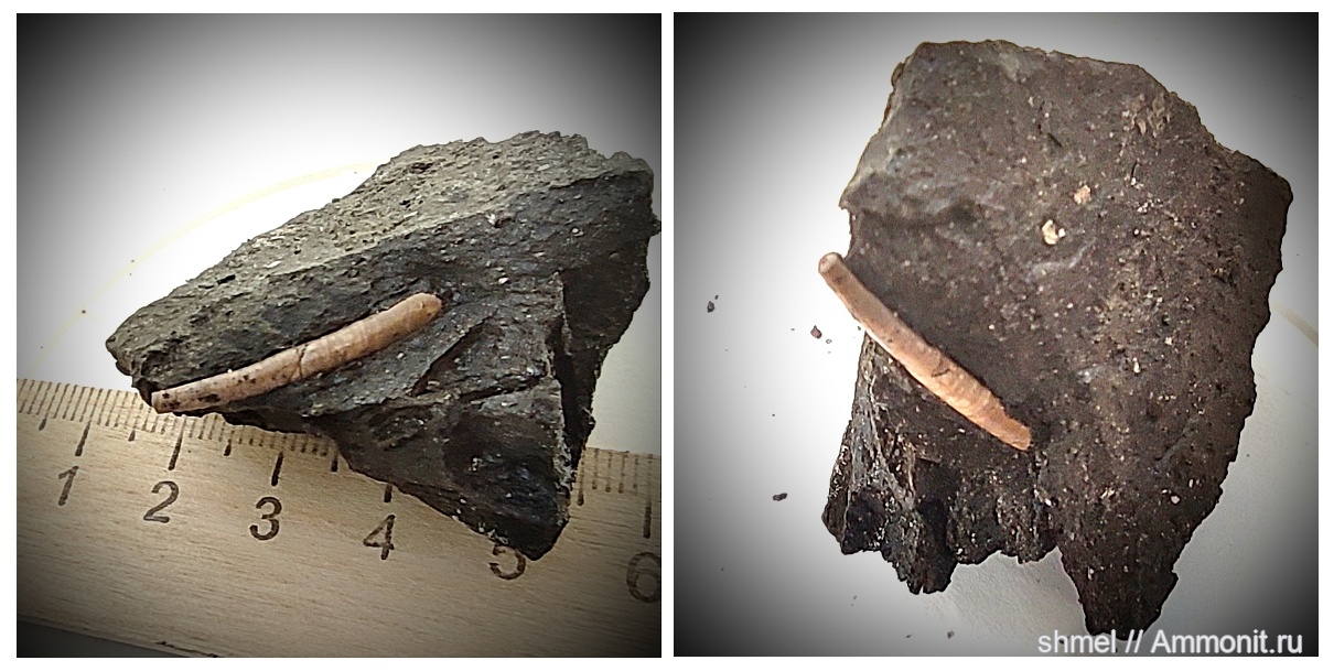 Лопатоногий моллюск. Длина 2,2 см. Юра. Шмелёвка