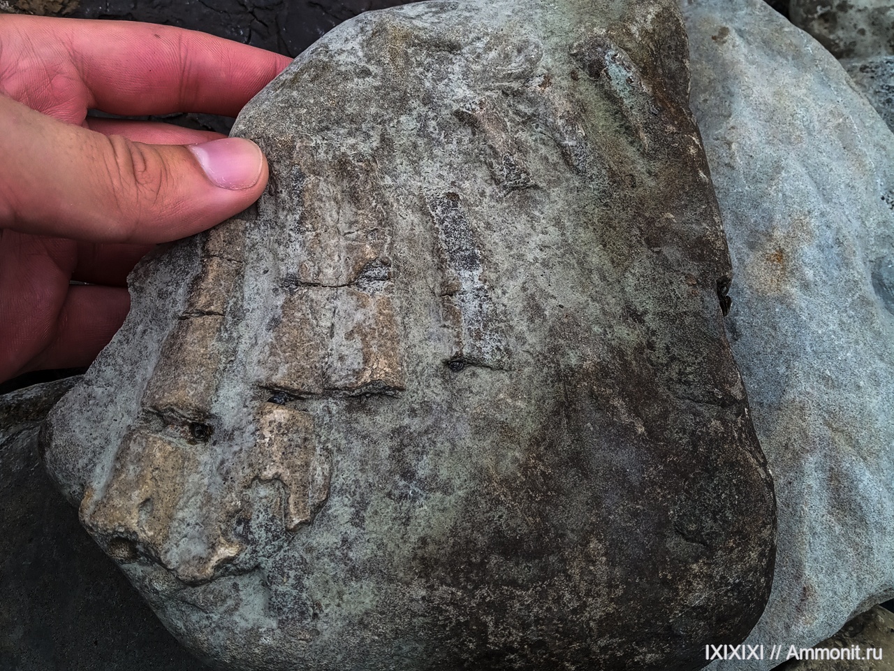 На одной из последних поездок попался вот такой валун. Не знаю, раковина возможно?