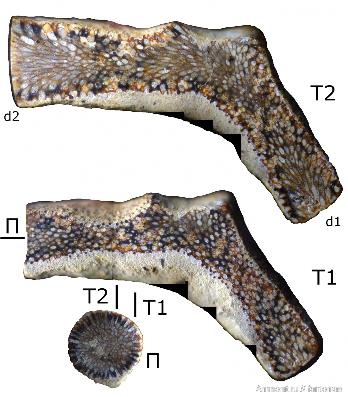 Т1 - тангенциальное сечение 1, линией обозначено примерное положение.