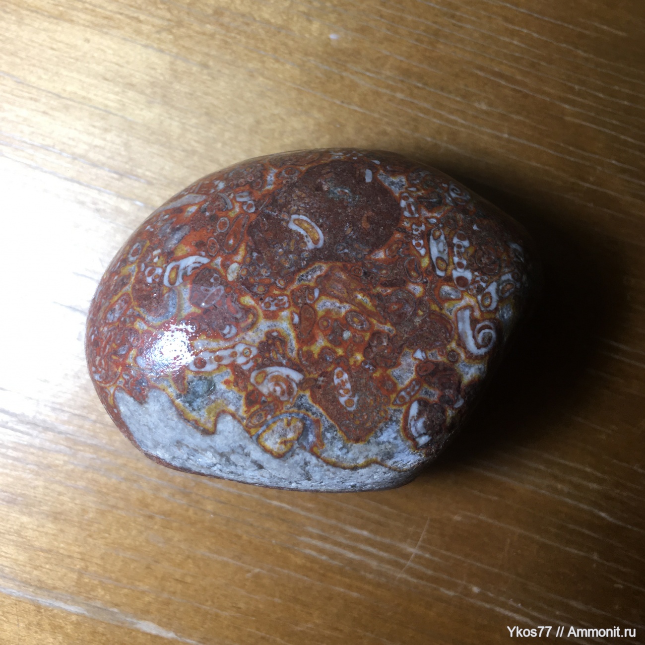 Красивый окатыш. И это классно, что Вас увлекла палеонтологическая тематика. Но определить что-либо по такому окатышу нереально, для это нужна совсем другая сохранность. | ||||||