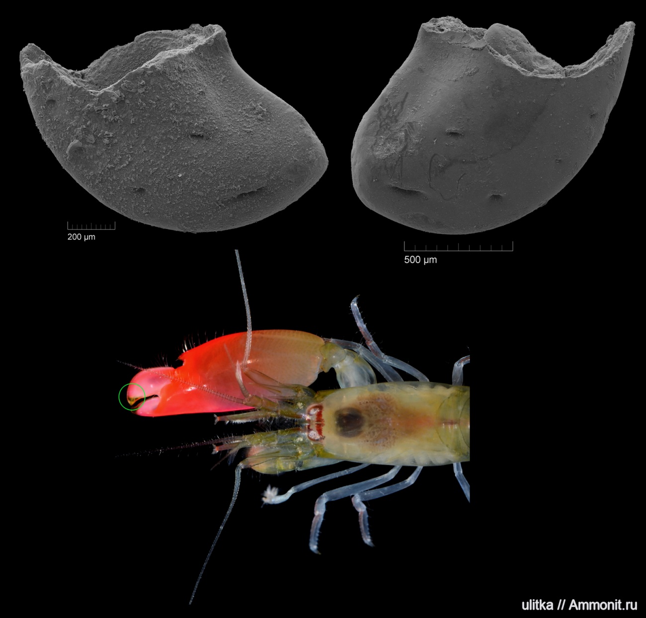 Находки окостеневших кончиков щёлкающей клешни креветок из семейства Alpheidae. Нижний чокрак, р. Белая.