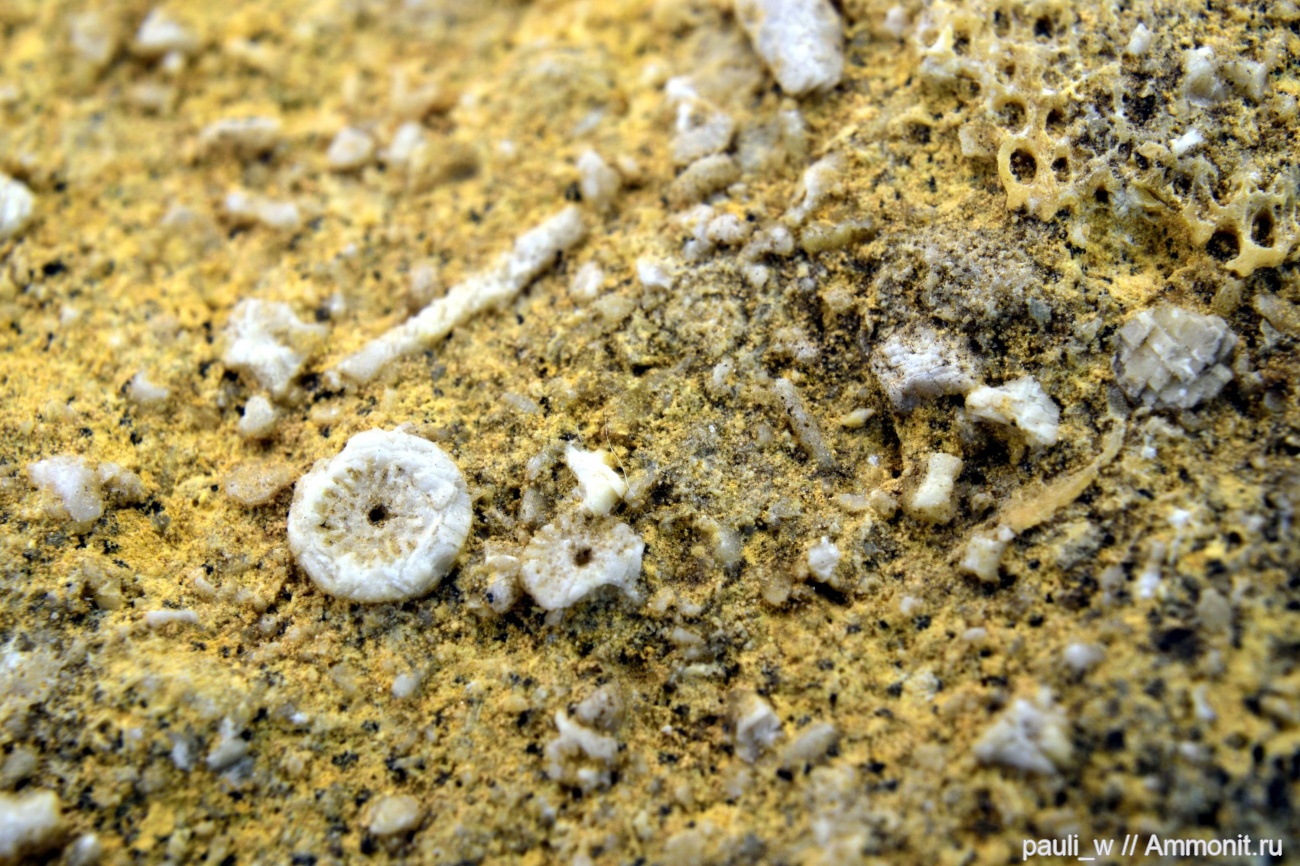 Диаметр самых крупных включений (сегмент Криноиды в центре) составляет 2,5 мм.