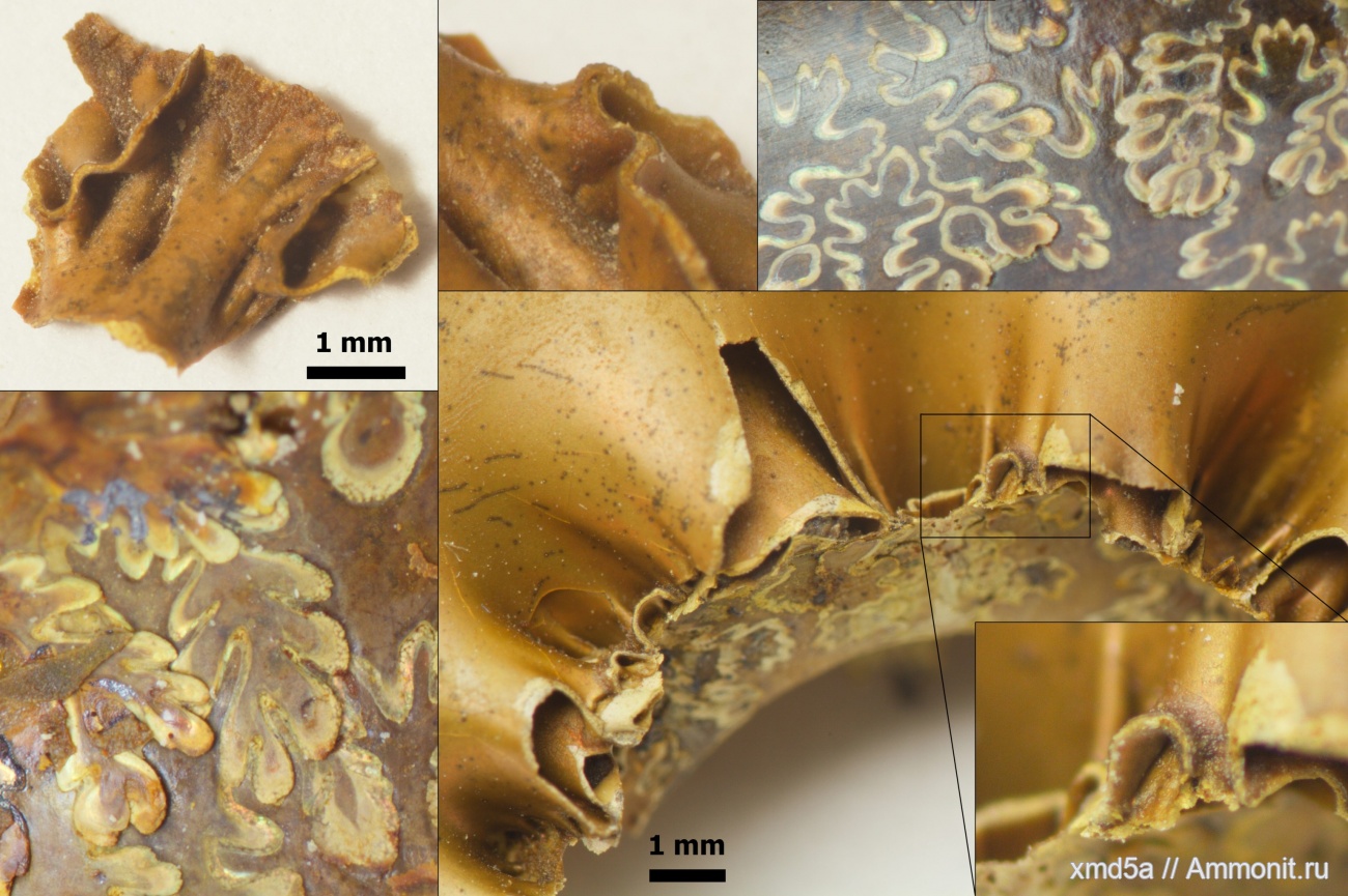 Обратил внимание что лопастные линии накладываются друг на друга и стал искать фрагменты, которые бы прояснили ситуацию. Оказалось что аммонит почему-то строил перегородки очень часто, одну на другой.