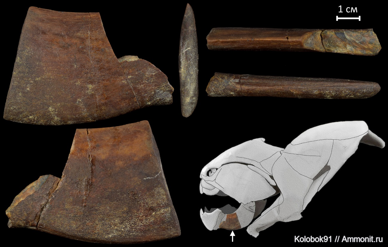 Предположительно фрагмент нижней челюсти очень крупной пахиостеоморфной артродиры.