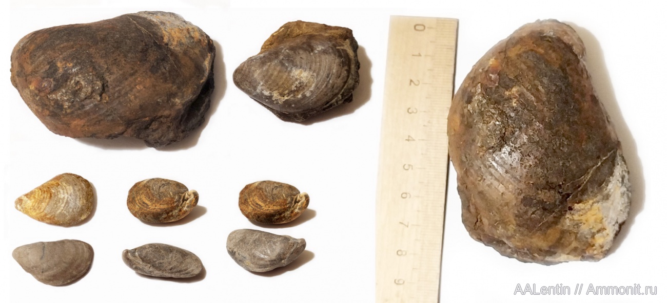 Двустворчатые молюски Buchia не плохой сохранности разного размера. Самая большая 8 см, две маленькие сохранились с двумя створками. Правильные названия не знаю, пожалуйста помогите определить. Найдены в стене в 1 м над уровнем воды (наверное в средневолжском подъярусе), в районе пос. Новокашпирский г.о. Сызрань Самарской области.