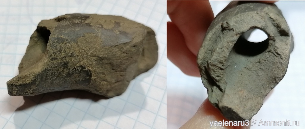 Все-таки,наверное это не окаменелость, покрутила в руках и поняла, что не такая тяжёлая. Хотя нашла её у берега, где есть выходы келловей-оксфорд. яруса. Варианты с конкрецией и керамикой мне нравятся. Кстати отверстия разные с одной стороны более круглое, а с другой- овальное. | ||||||