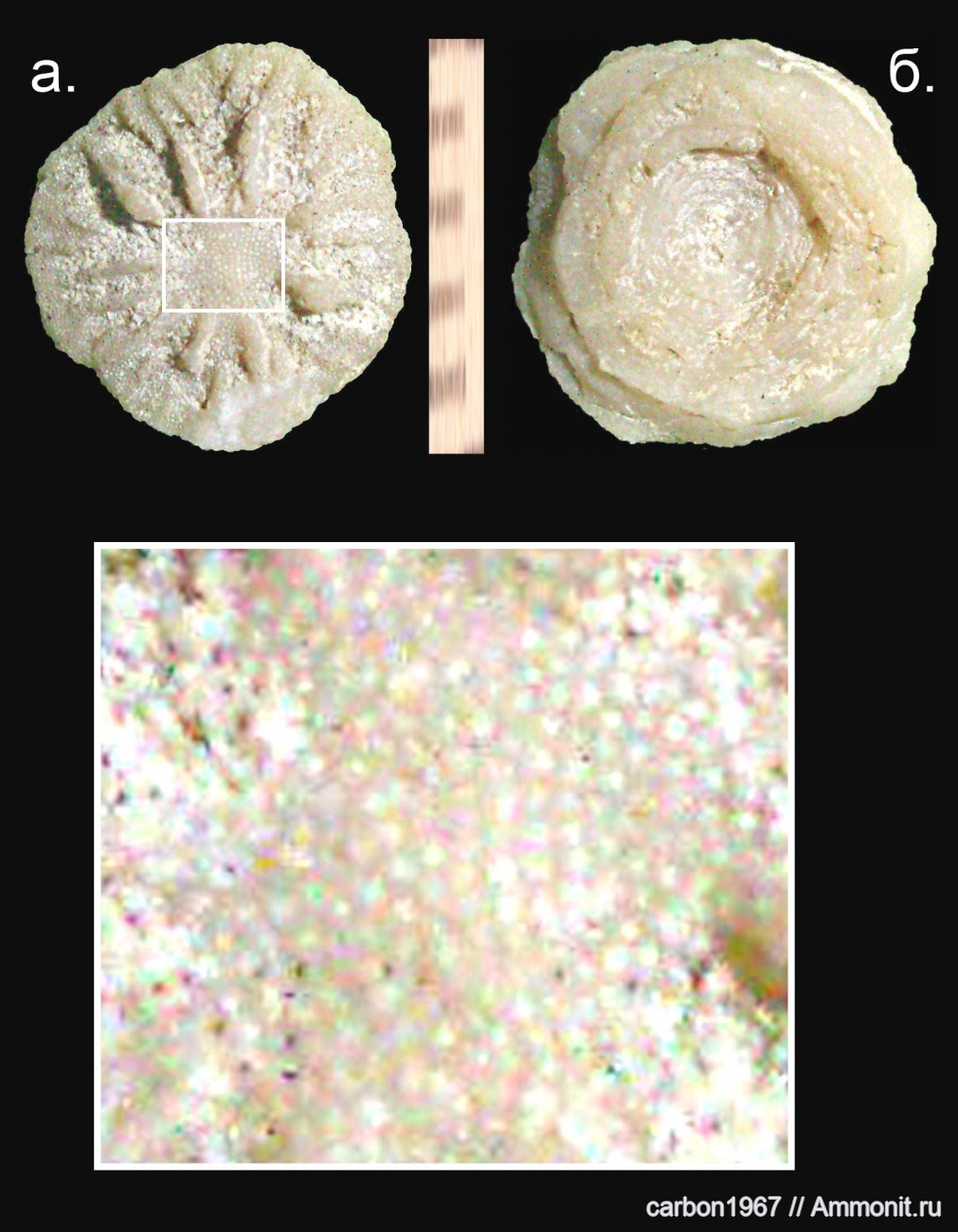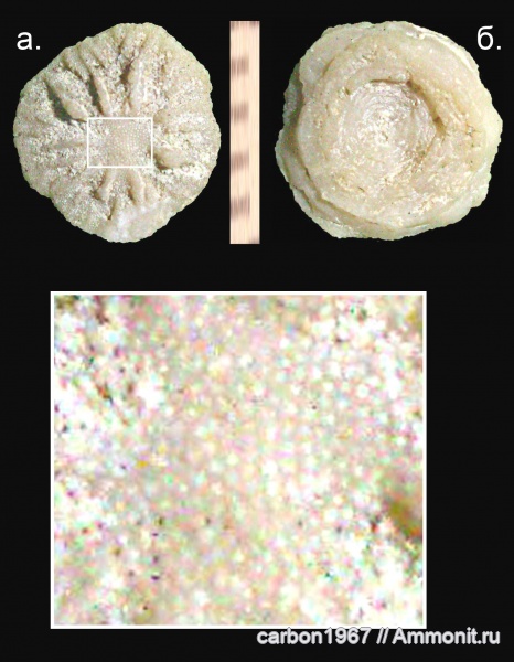 Данный коралл имеет интересную и не характерную дисковидную форму и не менее интересное микроскопическое покрытие см. врезку.