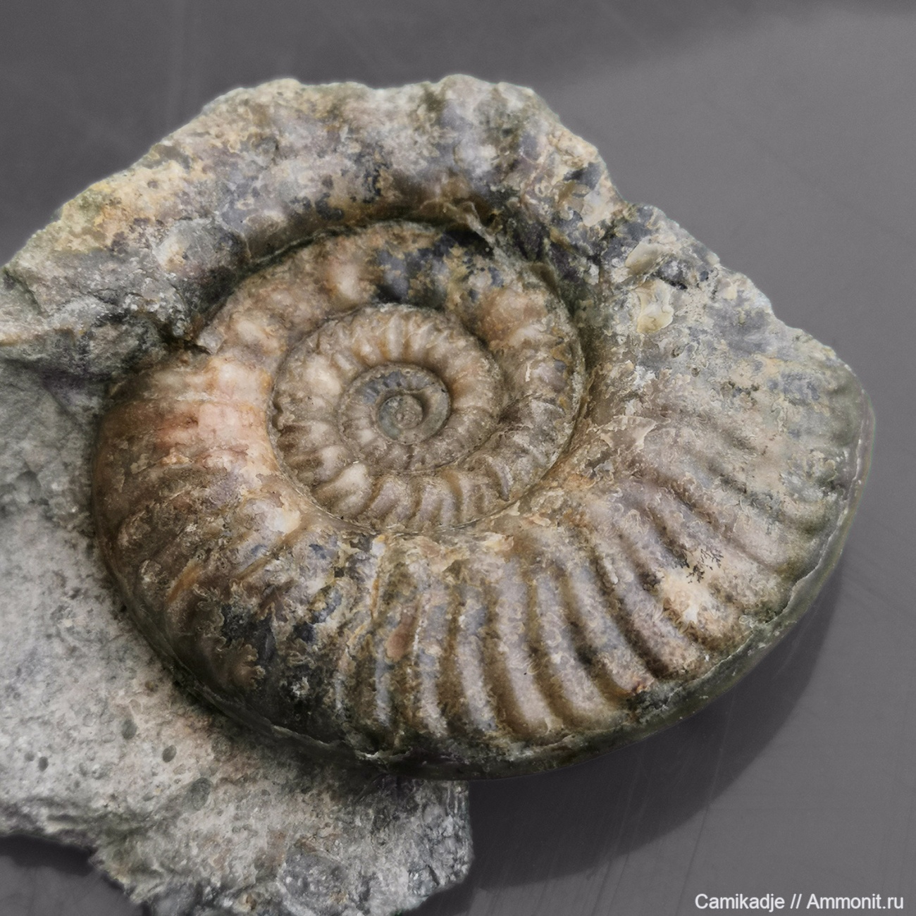 Диаметр около 7 см. Аммонит почти полностью замещен кальцитом. Нашел 3 почти идентичных вида, надеюсь на помощь в определении.
