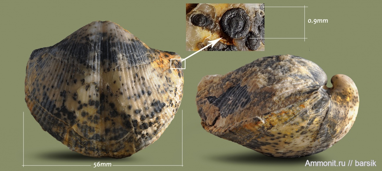 Эту интересную раковину леопардового окраса я получил в подарок от уважаемого Александра Юрьевича, как и много других. Теперь даже подумываю об отдельной экспозиции – «Брахиоподы Московской области».