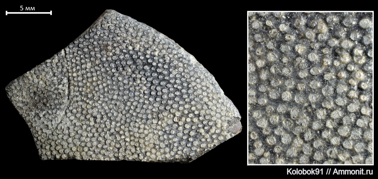 Фрагмент покровной пластины плакодермы, которую так и не удалось определить. За всё время поисков подобных фрагментов больше не попадалось. Буду благодарен за любую помощь в определении.