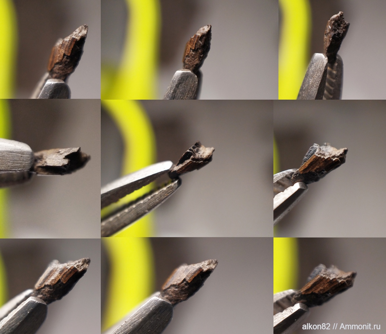 Мне показалось что я вижу триторы - полосато-столбчатые структуры, соответствующие жевательным областям таких пластин. Однако, приглядевшись повторно - я уже не уверен что я их вижу. Необходимо сфотографировать образец нормально, а эту фотографию удалить дабы не вводить никого в заблуждение.