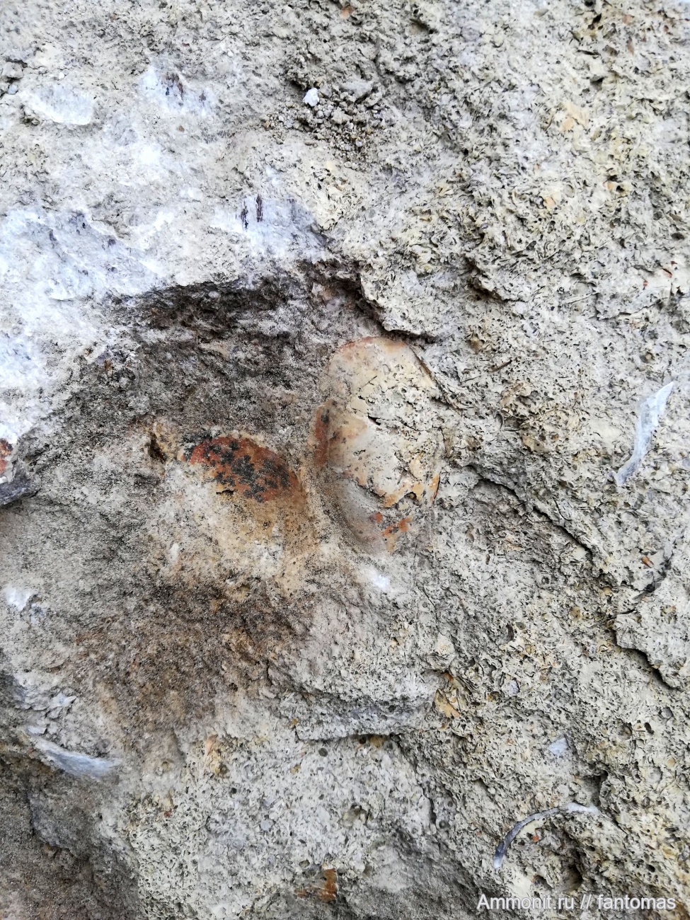 Песчаник с чем-то карбонатным. Самих раковин, увы, нет, все растворилось. По фауне типичные казанские брахиоподы. Заброшенный карьер | ||||||