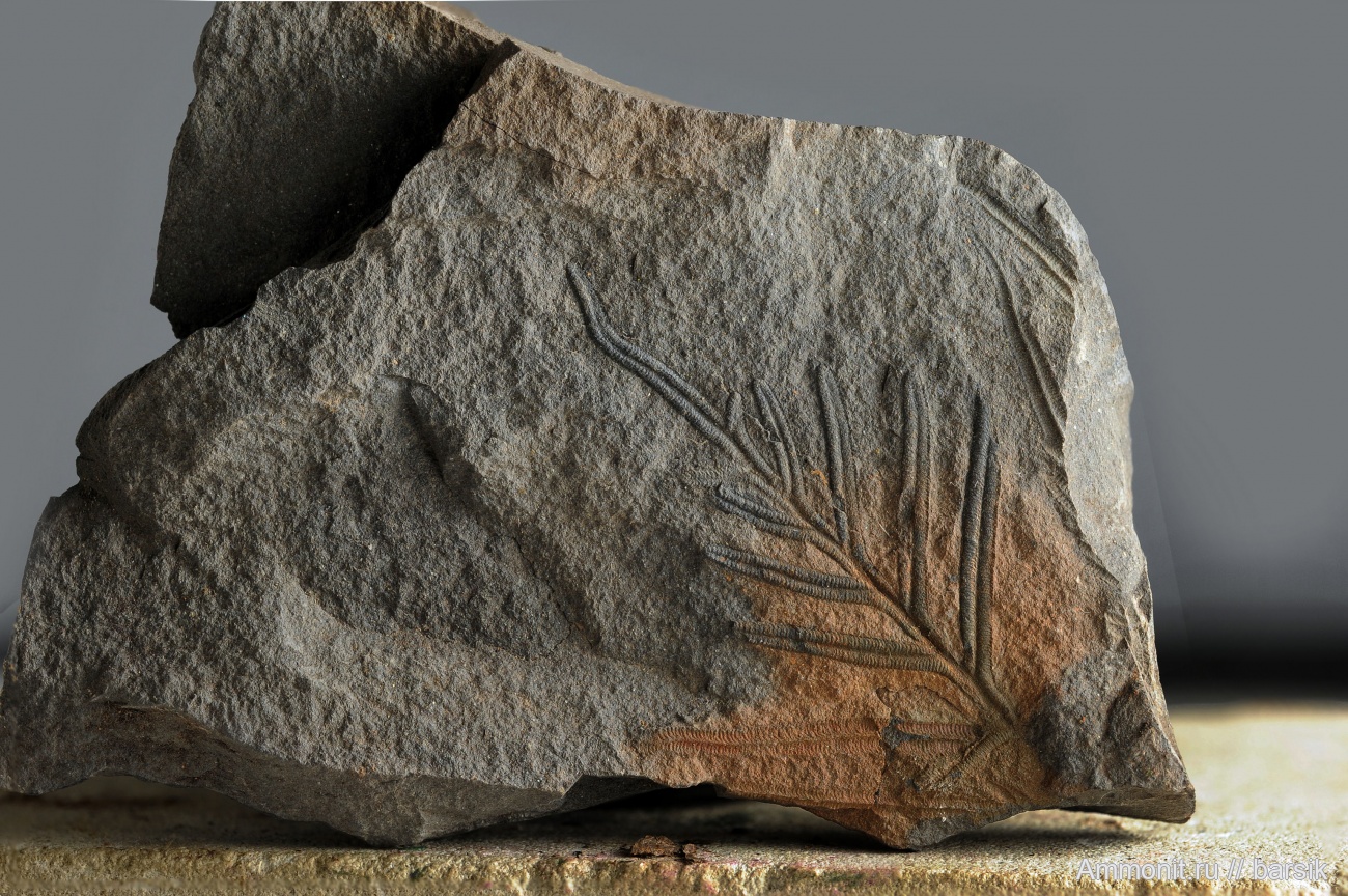 Конечное перышко добавляет находке некоторую законченность. Размер около 70мм и на таком фрагменте определить, что это - вершина самой вайи или бокового отростка сложного листа, скорее всего невозможно. То же можно сказать и о более крупных фрагментах: