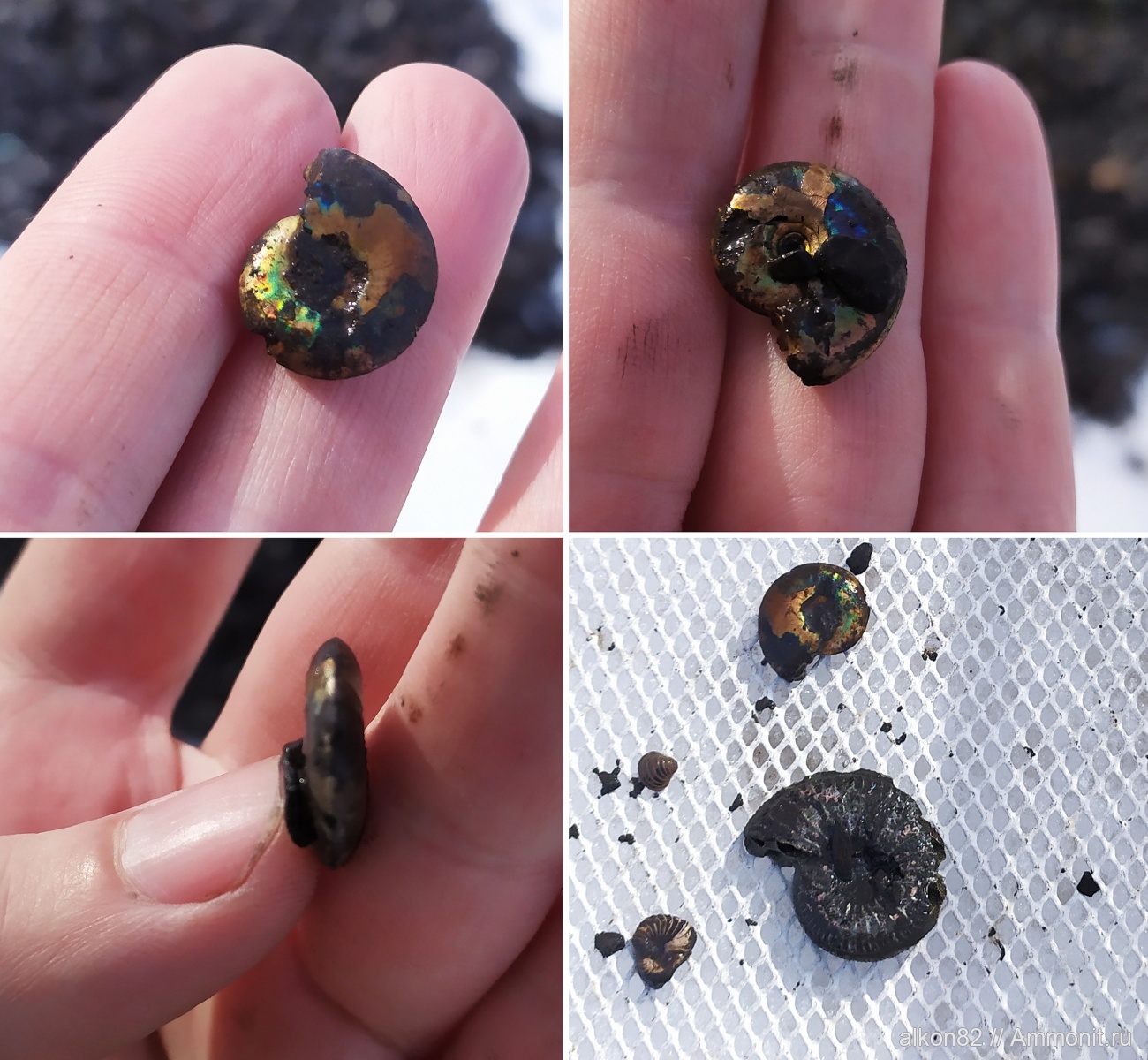 Но такие вот перламутровые отпечатки пупков там бывают, видел, а вот, собственно, и аммонит нашëлся. | ||||||
