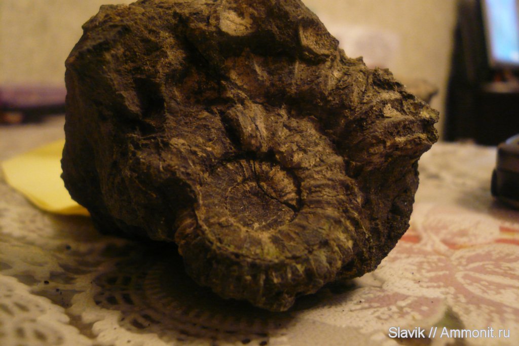 Аммонит Pavlovia в конкреции. Диаметр раковины 50 мм.