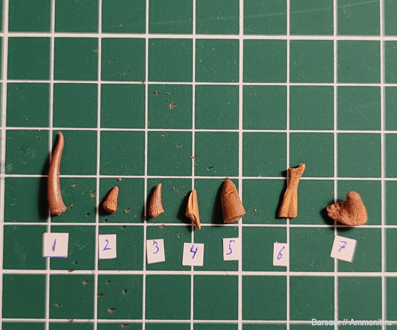 Так же найденые зубы на реке Оредеж. Хотелось бы уточнить по поводу зуба под цифрой 1, может ли он принадлежать кому-то из отряда Onychodontiformes? И что за кость под номером 6? Позже еще будут части панцирей)