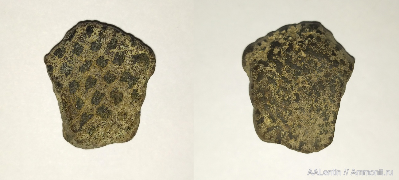 Кусочек с отпечатком похожим на фактуру губки Guettardiscyphia. Подобное нахожу впервые. Размер 2х2,5 см, толщина 0,5 см. Найден у кромки воды среди мелких камушков.