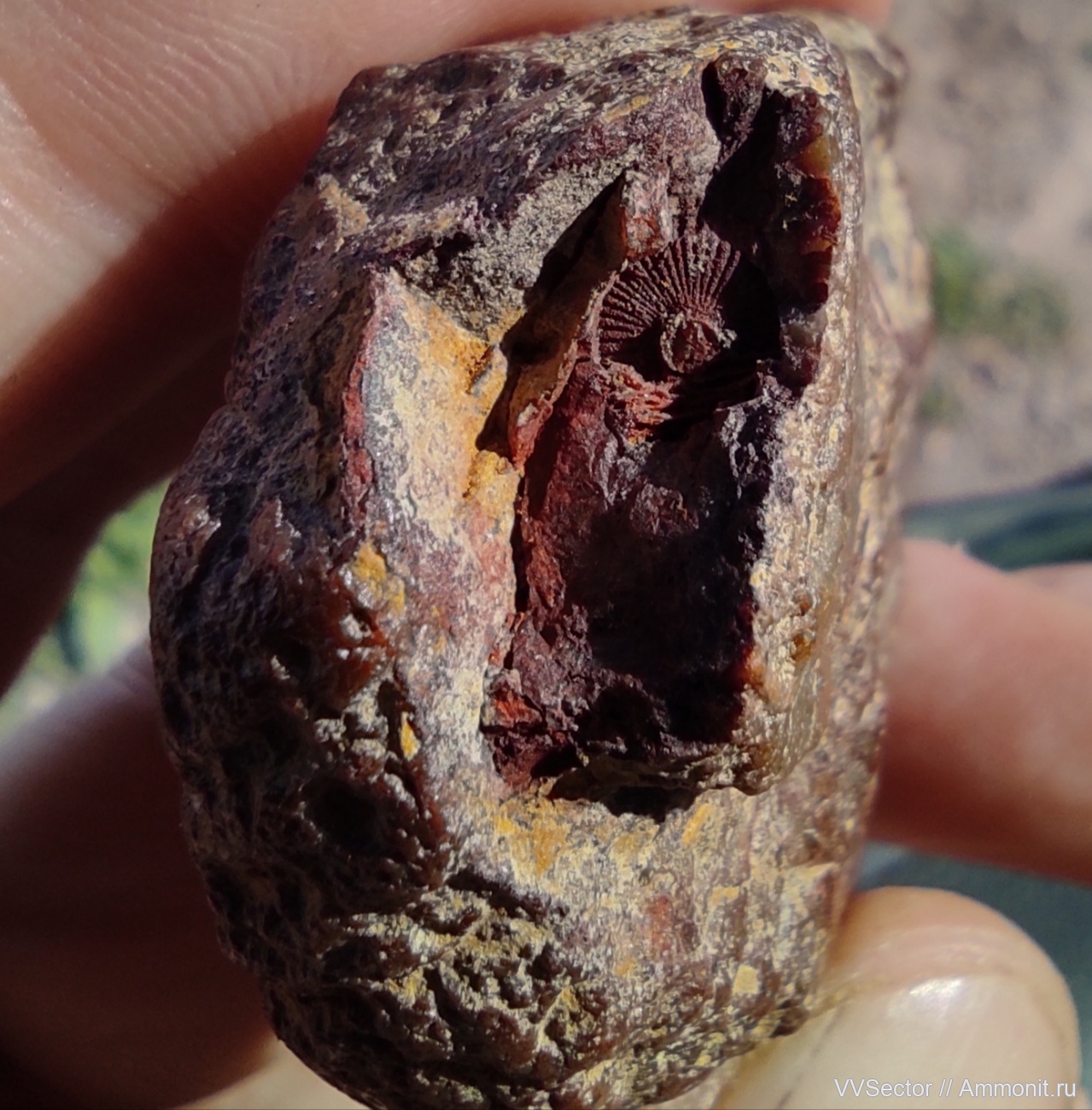 Отпечаток морской лилии в окатыше сильно окремнённого известняка.