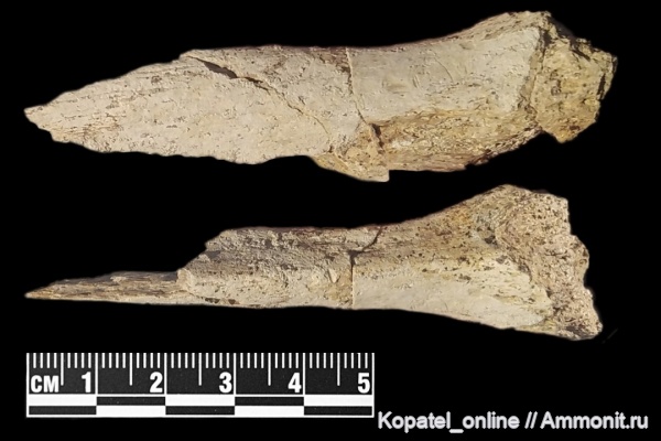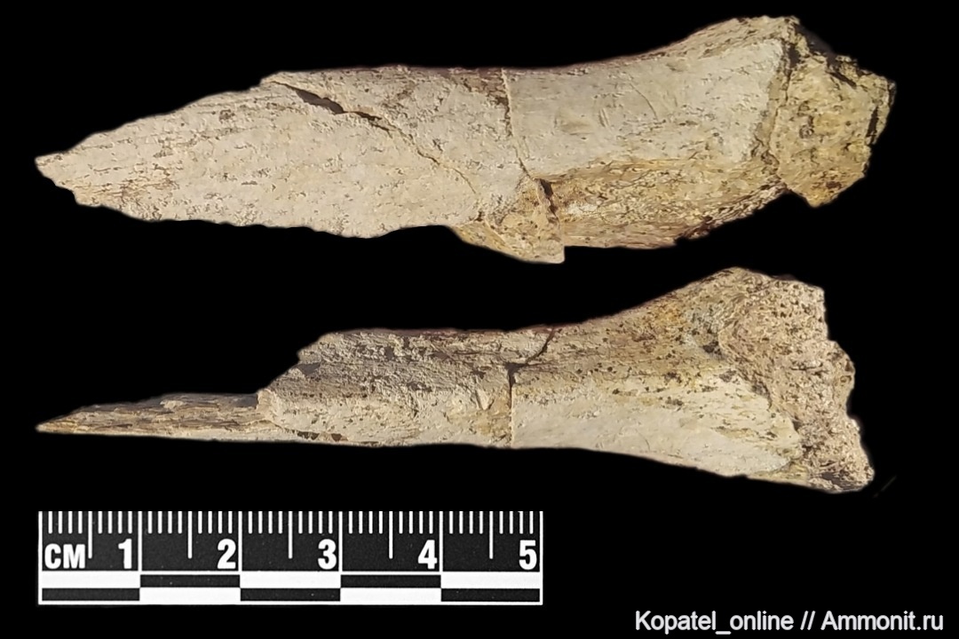За целый день намывания фосфоритового горизонта вместе с russianammonit было найдено только это разбитое ребро и почти четырехсантиметровая коронка кретодуса. Вероятно, это говорит не столько о бедности Шацка, сколько о криворукости автора). Коронку нашёл не я, поэтому публикую её в тексте с согласия автора находки. Длина ребра 83 мм.