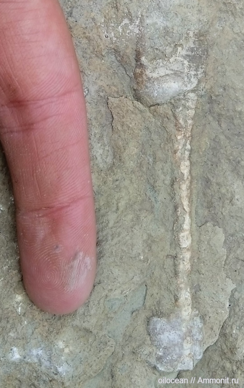 У лилий членики одинакового размера. Сохранность находки неочень, однако, хорошо виден в породе на боку прамиидальный щиток от морского ежа. | ||||||