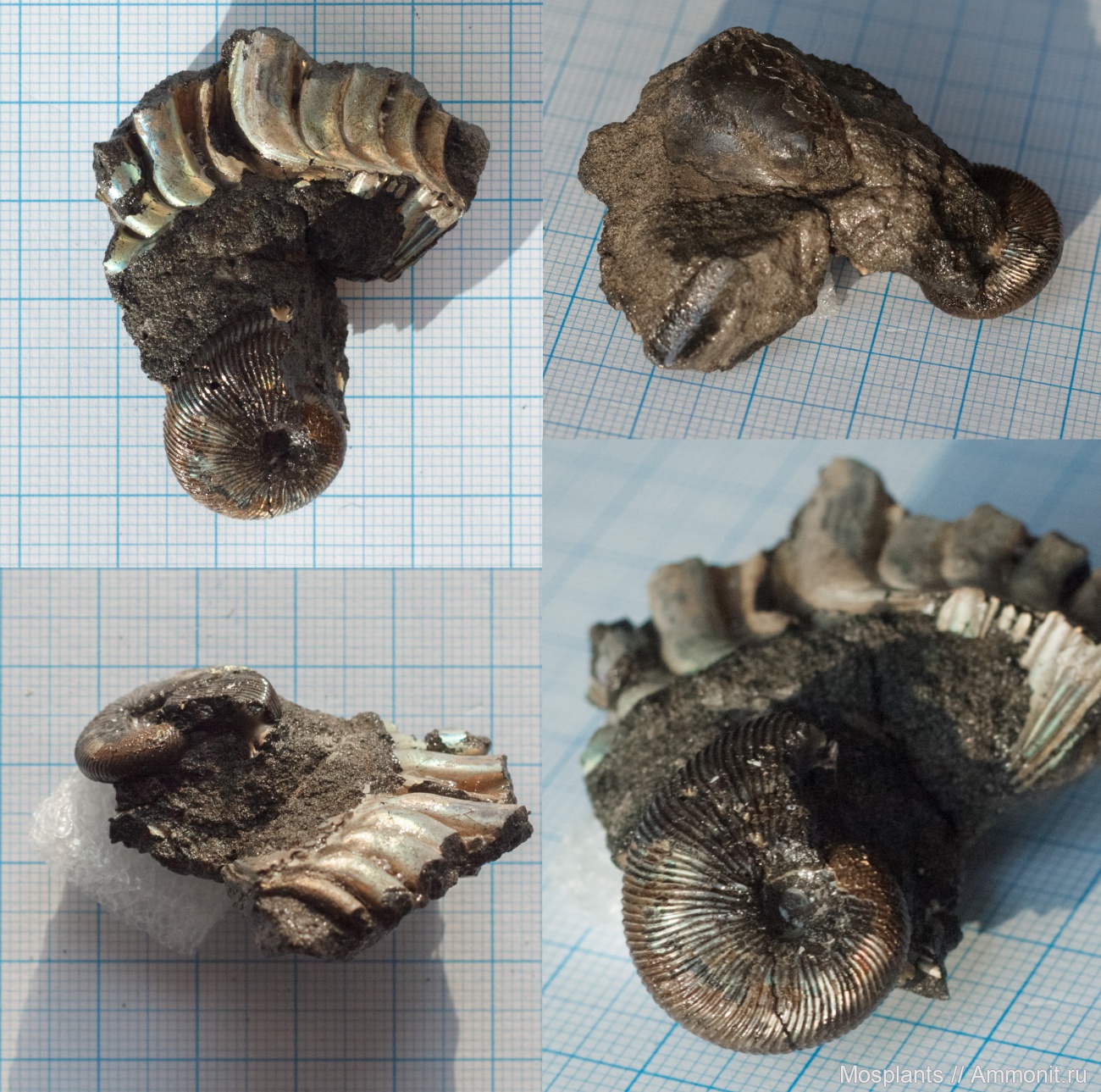 Еще один фрагмент аммонита с газона Москвы 2022 года, над ним - кусок бОльшего размера (один из внешних витков? Великоват, по-моему). С обратной стороны - выпуклая створка моллюска (двустворка?) и выемка, где, возможно, лежал белемнит.