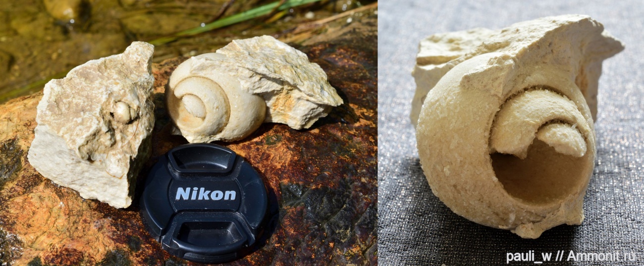 Находка от 02.08.22. Брюхоногие находились в одной конкреции, меньший экземпляр находился снаружи (он и привлек внимание), а больший внутри конкреции.