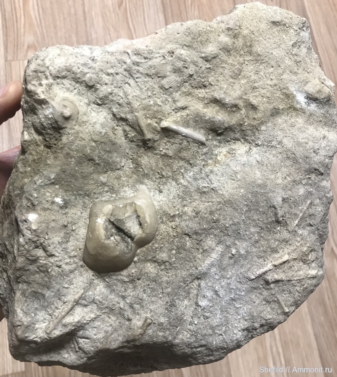 Моллюсков не вижу. Вижу членики стеблей морских лилий и вроде даже членик руки, он такой своеобразный, как кружочек с вырезанным сектором. Вы, мастер, лучше не застревайте на уровне начинающего любителя. Сильно потрепанные находки, опечатки в терминах и ошибки в привязках - это нормально только в самом начале пути. Не сочтите за обиду. | ||||||