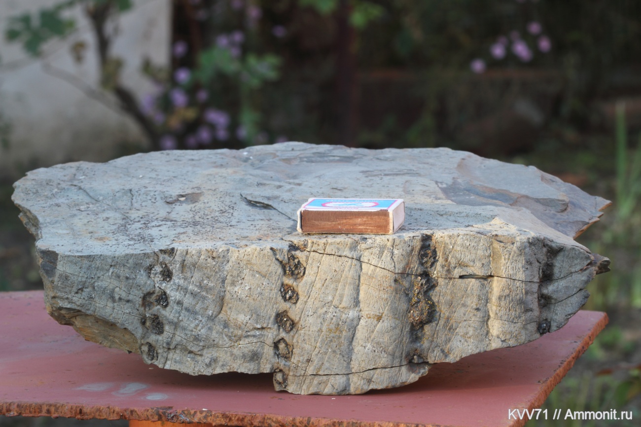 На фото диагностируемый фрагмент ствола сигиллярии. Расстояние между листовыми рубцами 7 см. Придумывать не буду, но каждый может прикинуть диаметр ствола по фрагменту дуги окружности Фото.