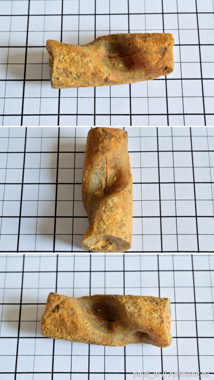 Обломок ростра найден в отвалах породы у дороги (кучи с многочисленной фауной карбона рядом с дачным поселком). Сначала принял его за веточку мшанки или стебель морской лилии, но приглядевшись понял, что это белемнит с достаточно необычным и сильным прижизненным повреждением.
