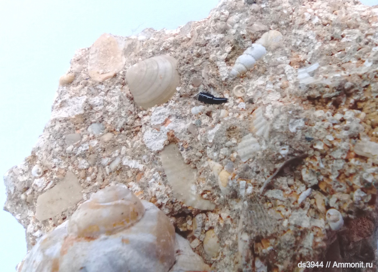 Длина черного "зубца" 6 мм. При добыче барботелл(на фото как раз видно часть раковины) наткнулся на это в плитке, сначала "зубец" был наполовину скрыт известняком, дорасчищал иголкой. Вроде как эмаль есть и как-бы остатки корня просматриваются, так что основная версия пока, что это зуб дельфина. На точке или рядом с ней, встречались изолированные кости млекопитающих и черепах неогена.