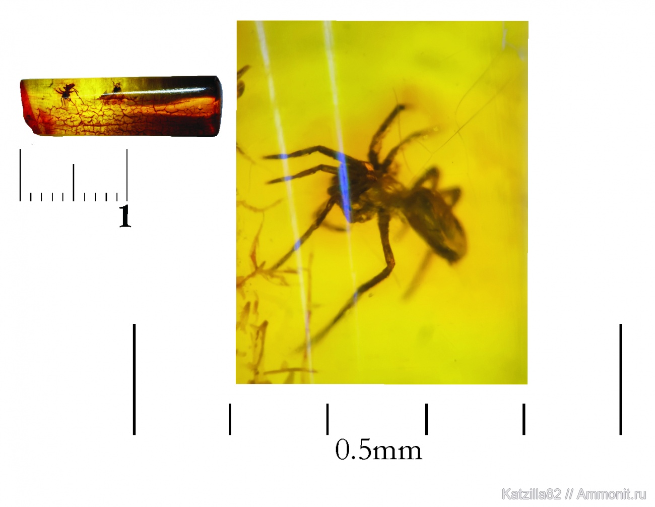 Инклюз.Паук.Был приобретен мной, как сувенир в ГБУК музеи янтаря,г.Калиниград.Размер вставки янтаря 19х5х3 mm.Благадарю всех за интерес к пауку и за интересную информацию.