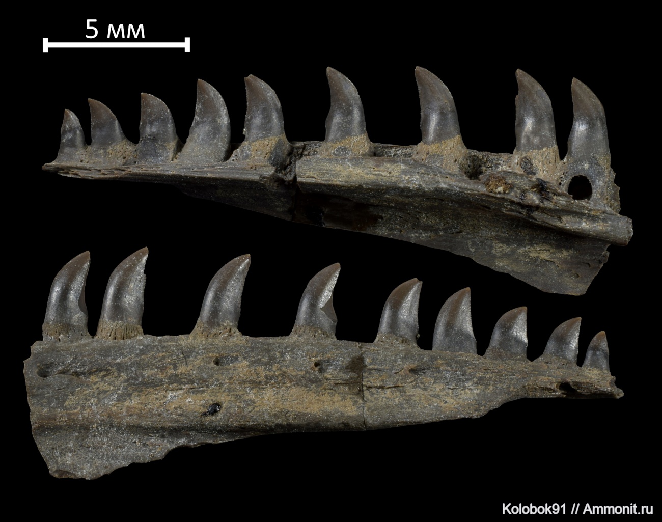 Да уж, у этой рептилии, хоть и небольшой, зубки по крупнее, если схватит, то не вырвешься. Отличная находка, хороший сохран. | ||||||