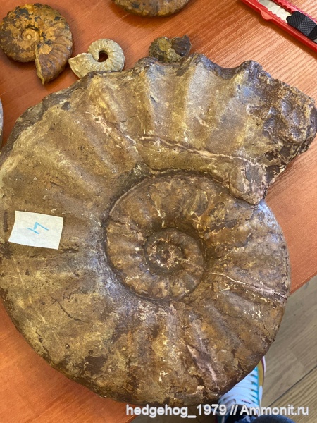аммонит найден на Мангышлаке, Казахстан (в горизонте нижнего Мела). Диаметр около 30 см