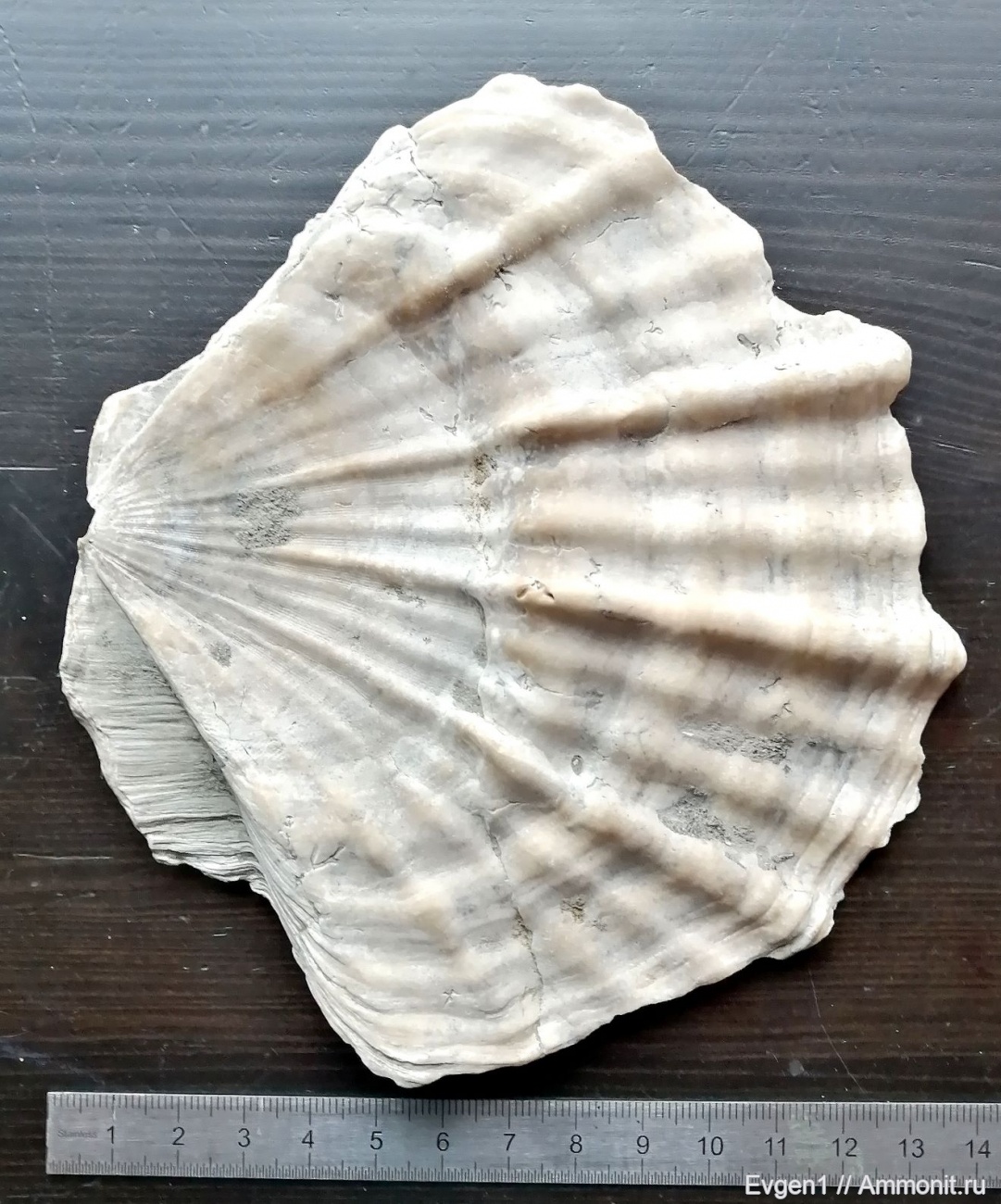 Окаменелая раковина двухстворчатого моллюска, родича современного морского гребешка, юг Сахалина, р.Вахрушевка