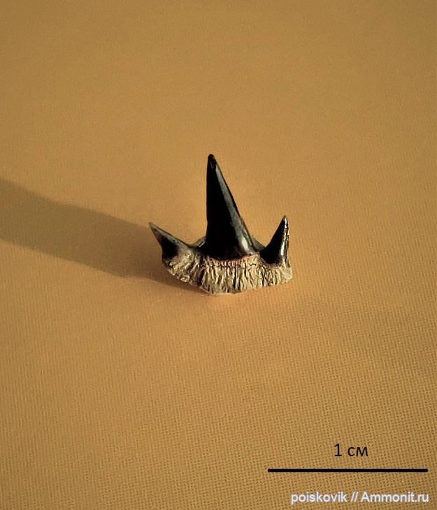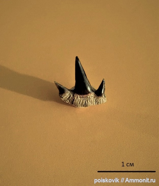 Зуб неизвестной нам акулы (фото с обратной стороны см. Фото) из барремских глин Верхоречья.