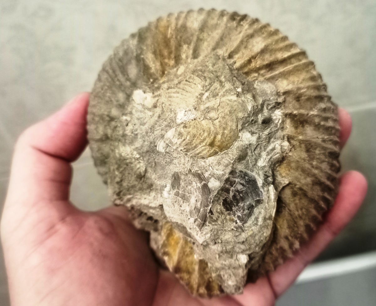 Аммонит был залеплен сопутствующей фауной, думал, что откроется нормально. Увы, центрушки не оказалось.