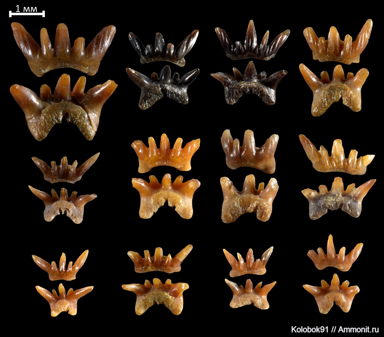 Небольшой коллаж с зубами хрящевых рыб Phoebodus.