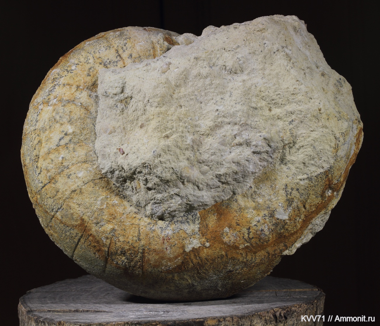 Наутилус с частью жилой камеры с одной стороны, с другой сколота. Заявленный размер 21 см дан видимо по целому ядру, но чистить то я буду только с одной, где больше сохранился, а там размер 26 см. Присутствует подобие киля, хотя сильно округлый.