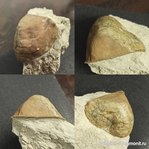Подобных брахиопод было найдено несколько, но эта значительно крупнее остальных, высота 33 мм, ширина по ушам 50 мм, этакий дедушка (или бабушка) по сравнению с остальными.